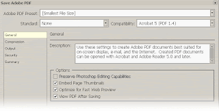 Dalam dialog box ini kamu bisa mengatur semua hal yang menyangkut hasil dokumen PDF mulai dari sekuriti hingga kompresi. Sederhananya kamu bisa langsung memilih format PDF yang kamu kehendaki didalam list Adobe PDF Format yang ada dibagian paling atas.