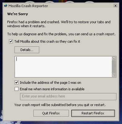 I am using Mozilla Firefox 3.0.5 when it become crashed. I really don’t know how this happened, but I just know that when I try go to the homepage of a blog…then crashed.